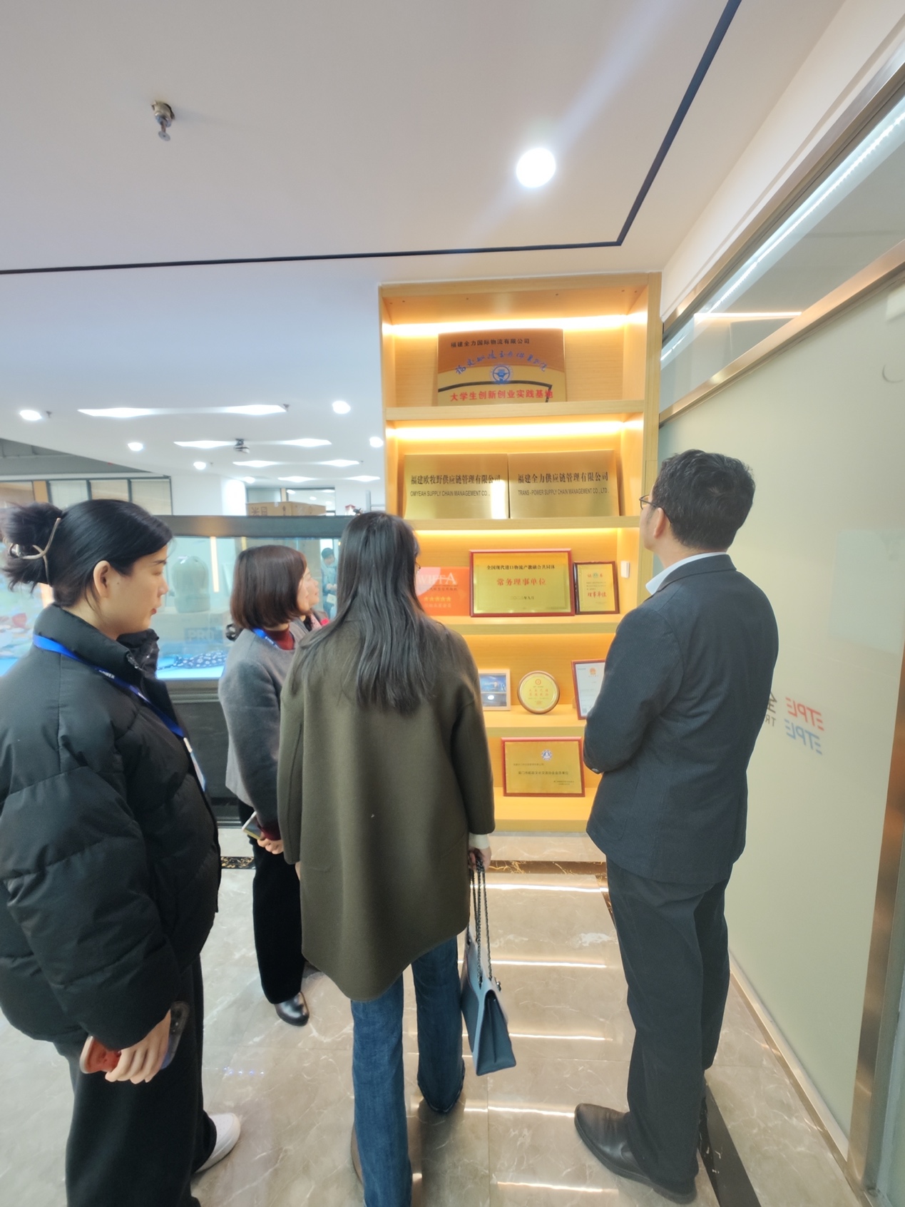 党总支书记兼常务副院长许惠铭一行还参观了福建全力供应链管理有限公司的企业文化展厅、客户服务中心及销售运营中心,深入了解企业“客户至上”的核心价值观与人才培养体系。企业通过“师徒制”培养模式、阶梯式岗位晋升机制及数字化服务工具的应用,打造了一支高效专业的物流服务团队,其经验为学院优化实践教学提供了重要参考。