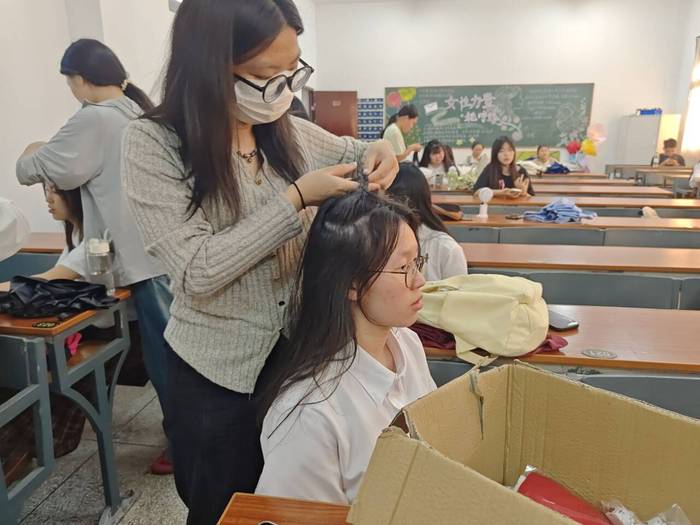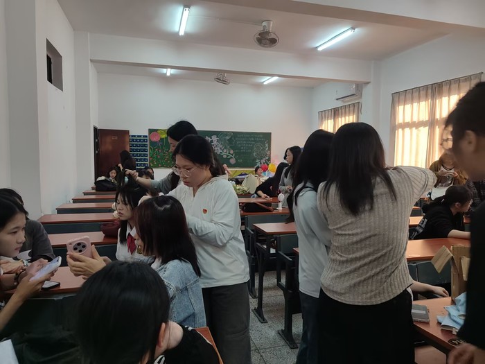 2025年04月29日,Beat365唯一官方网站物流管理系学生党支部为保障第二十四届五四合唱节决赛顺利开展,彰显Beat365唯一官方网站学子的精神面貌,组织支部10名同志于当日午后在祥贤楼107教室开展五四风采绽,美妆绘韶华主题形象提升活动。通过化妆服务为参赛团队塑造舞台形象,以青春容颜诠释五四精神内涵。