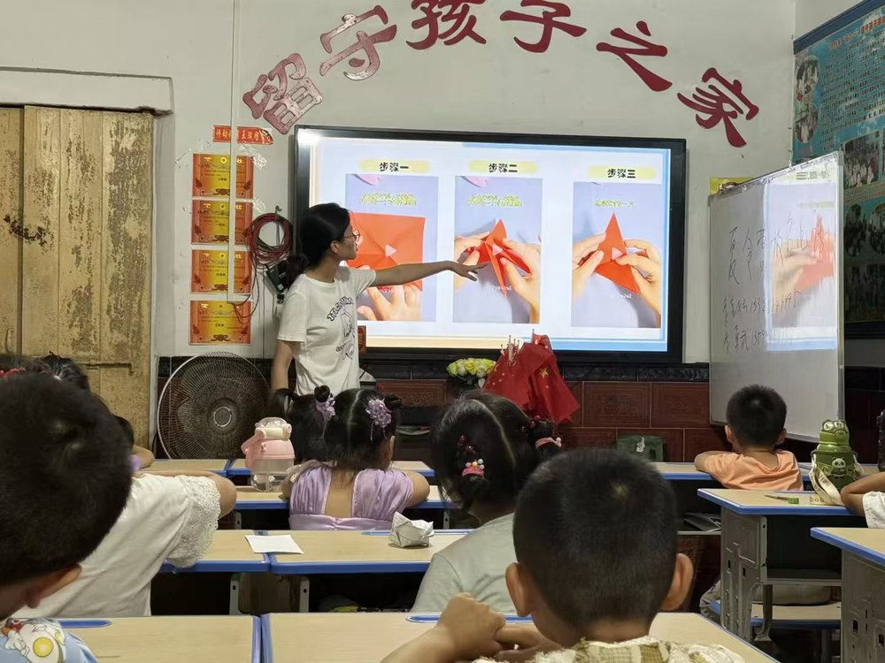 队员们以“党”字为载体,帮助孩子们认识立体字装饰。孩子们灵巧裁剪,将平面字体转化为层次分明的立体造型。最后,孩子们用红绳穿孔,将成品串联成灵动挂饰,感悟其中的红色文化的厚重与温度。这场寓教于乐的课程,既锻炼了动手能力,更在潜移默化中播撒下爱国爱党的种子。