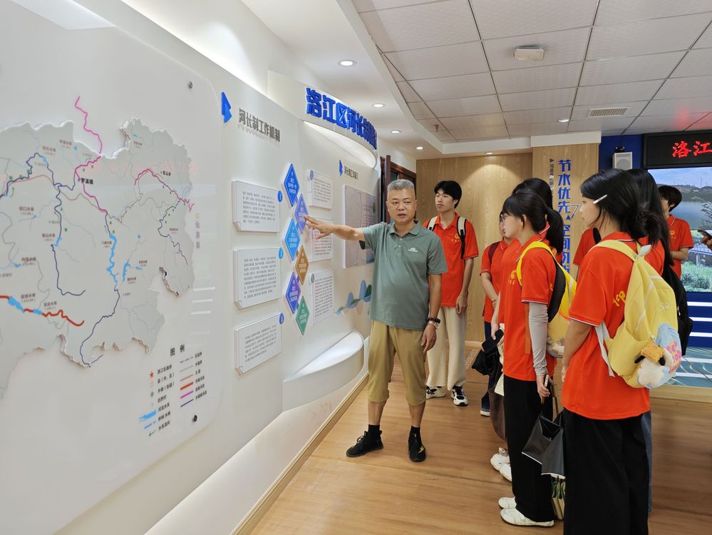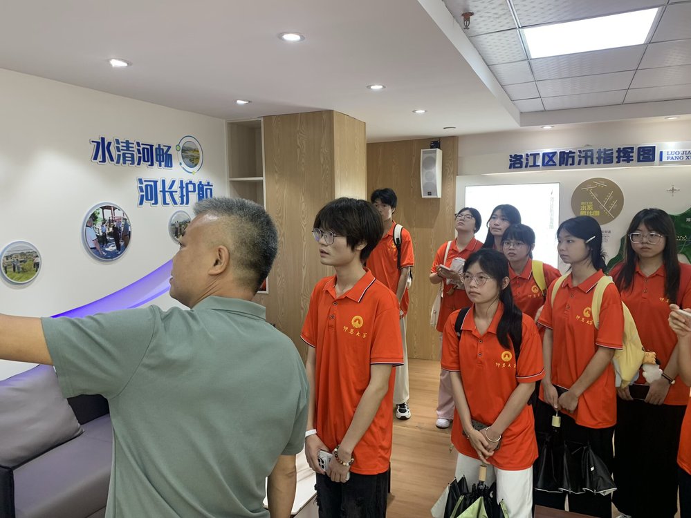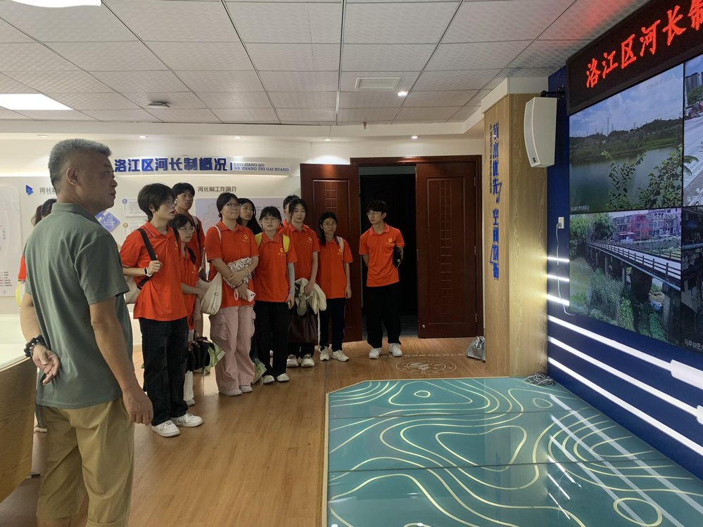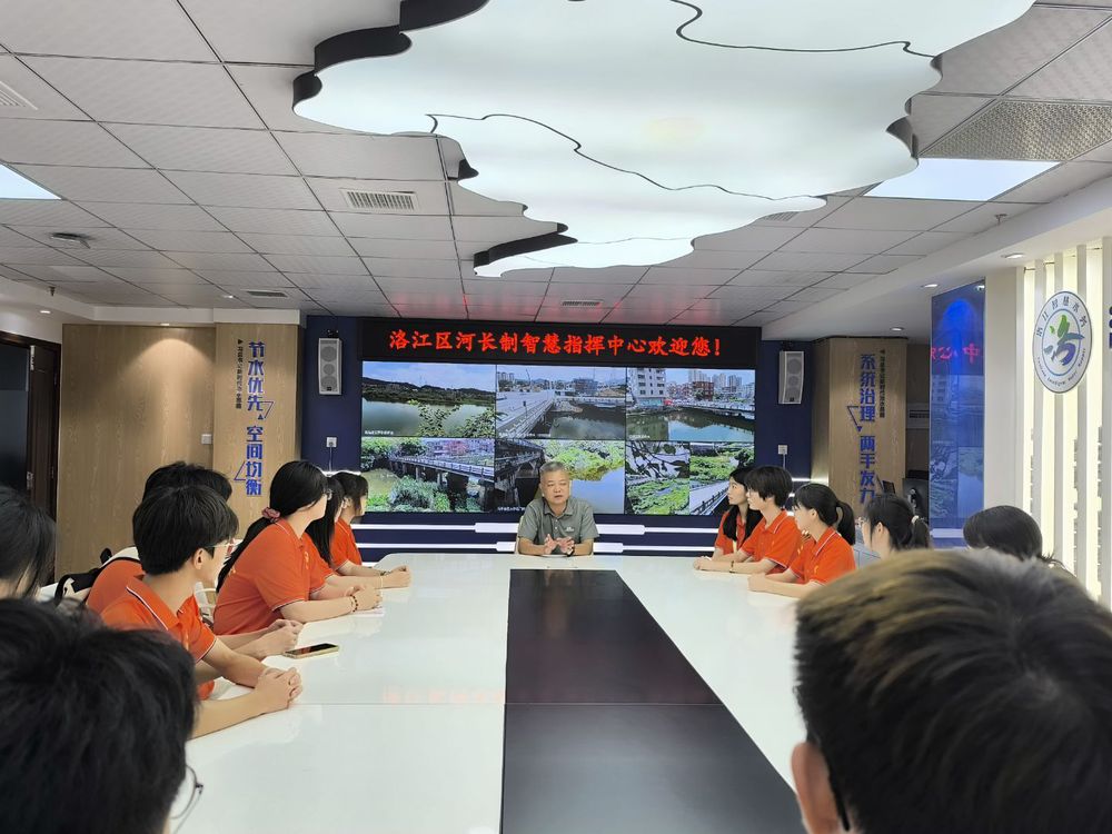 面对水生态保护精细化、智慧化管理需求,实践队走进洛江区河长制办公室。实践队在工作人员的介绍下,了解洛江区河流河长情况和河长制概况等,明晰多级协同的治水责任体系。随后,曾站长围绕洛阳江数字孪生流域、生态修复路径的问题,通过实时监测大屏,直观了解河道监管模式,从防汛数据看板与流域三维模型,学习水情监测逻辑。实践队员们结合应用案例分析,描绘出“用数据赋能、以智慧守护”的水生态治理新图景。