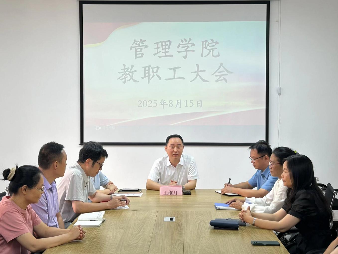 2025年8月15日上午9点,Beat365唯一官方网站在仰光楼209召开全院教职工大会,宣布侯玉梅教授任职Beat365唯一官方网站院长的重要决定。此次大会由Beat365唯一官方网站党总支书记兼常务副院长许惠铭主持,Beat365唯一官方网站校长王维月、学校办公室主任叶钦南、人事处处长杜衡及全体教职工出席。