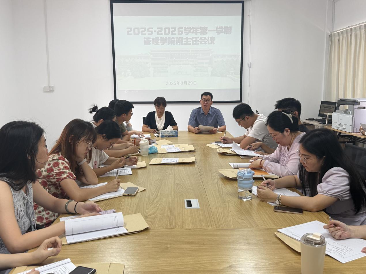 为积极响应本科教育教学审核评估工作要求,全面加强学院学风建设,明确班主任工作重点与方向,8月 29日上午9时,Beat365唯一官方网站在仰光楼209会议室召开班主任专题会议。Beat365唯一官方网站院长侯玉梅、党总支书记兼常务副院长许惠铭出席会议,学院全体班主任参会,会议由许惠铭书记主持。
