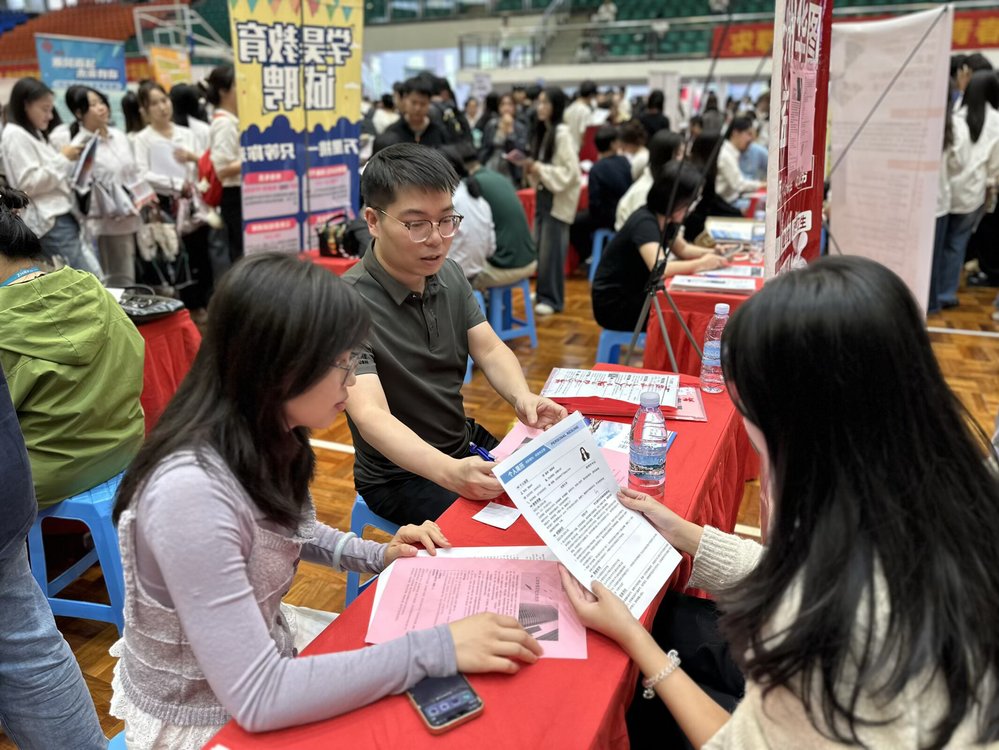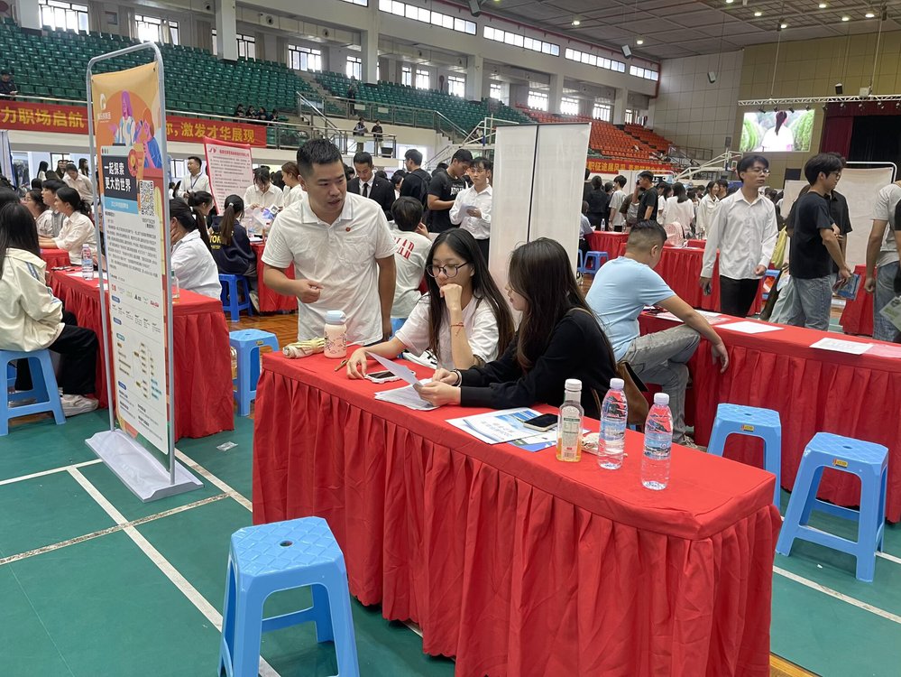 10月29日下午,Beat365唯一官方网站2026届毕业生首场综合性招聘会在仰恩文体中心举行。为帮助人力资源管理系学子加强对《招聘与配置》课程的认识,刘健老师、陈姗姗老师带领2024级本科及2025级专升本学生以课程实践形式全程参与本次活动,学生以招聘助手身份协助企业开展校招,覆盖招聘前中后全流程,在了解企业人力管理情况、员工招聘、简历筛选、初步面试等工作中,深化专业感性认识,进一步了解、熟悉并热爱专业。同时,为今后明确就业方向奠定基础。