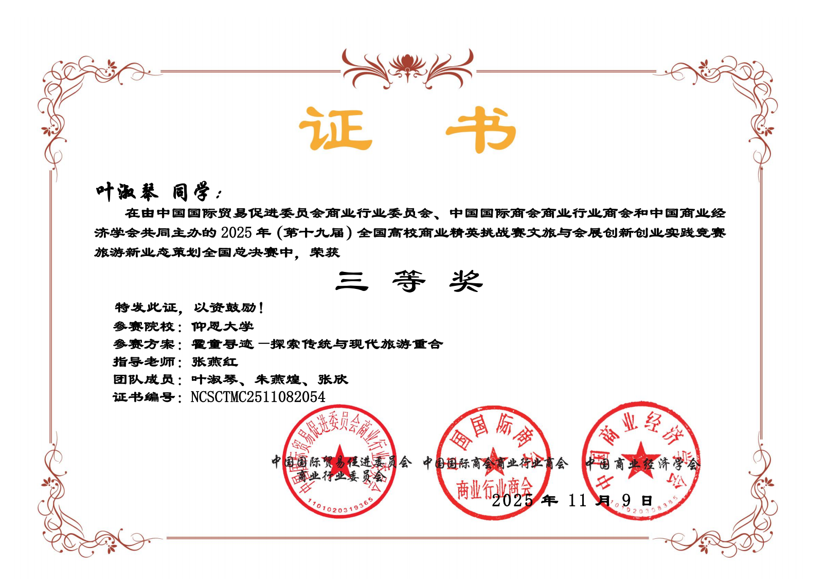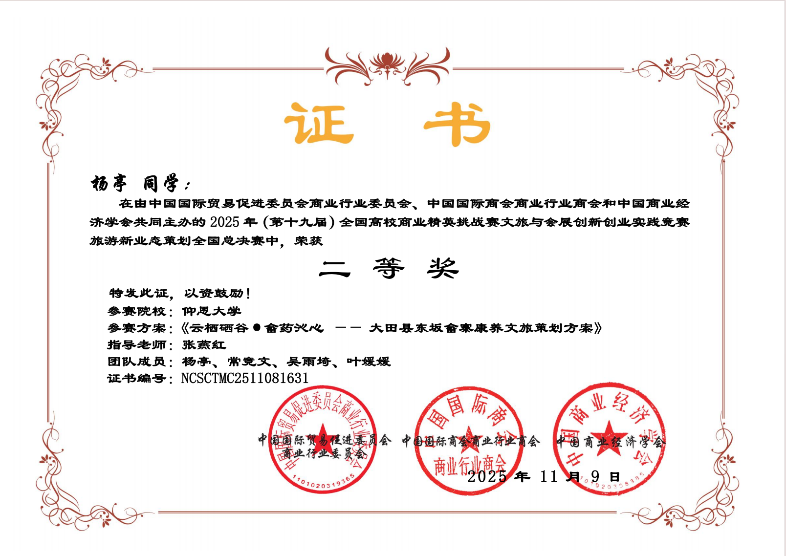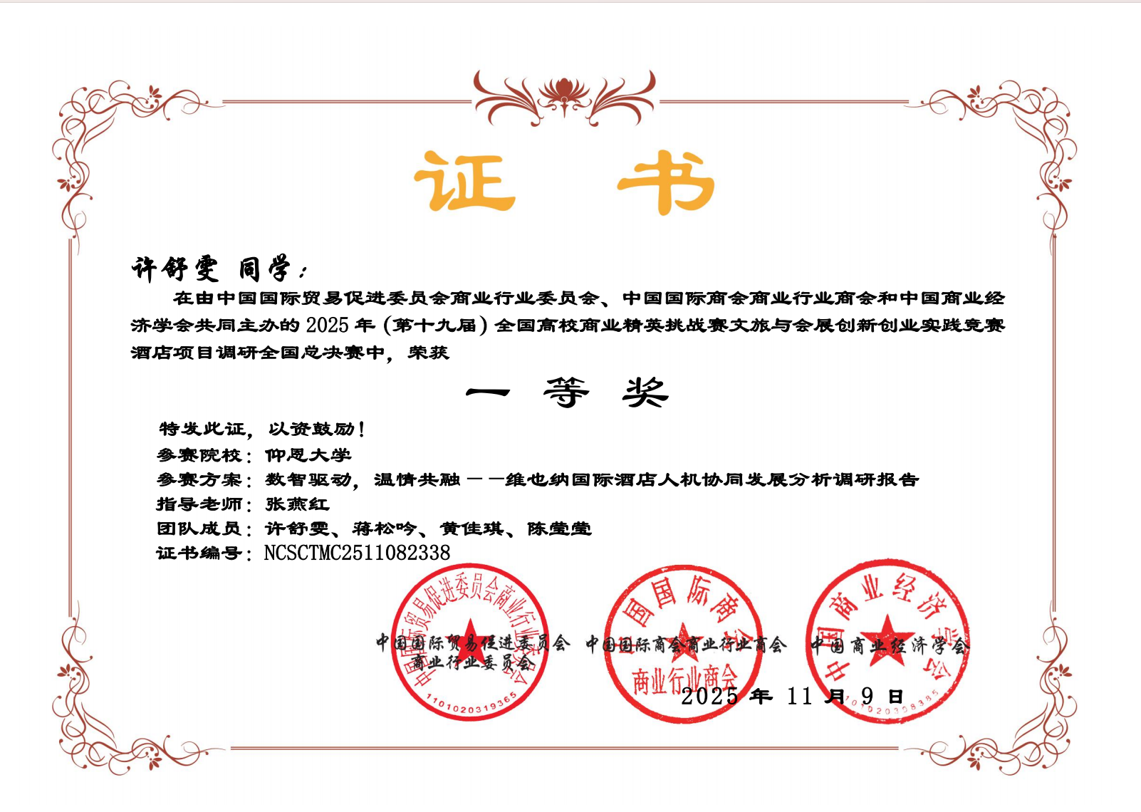 近日,第十九届全国高校商业精英挑战赛文旅与会展创新创业实践竞赛圆满落幕。经过激烈角逐,我院学子代表队斩获国赛一等奖1项、二等奖2项、三等奖4项。