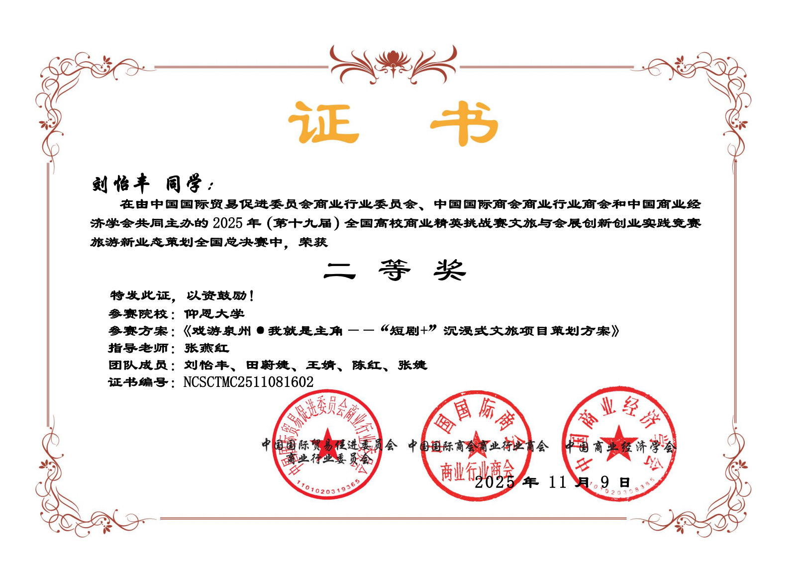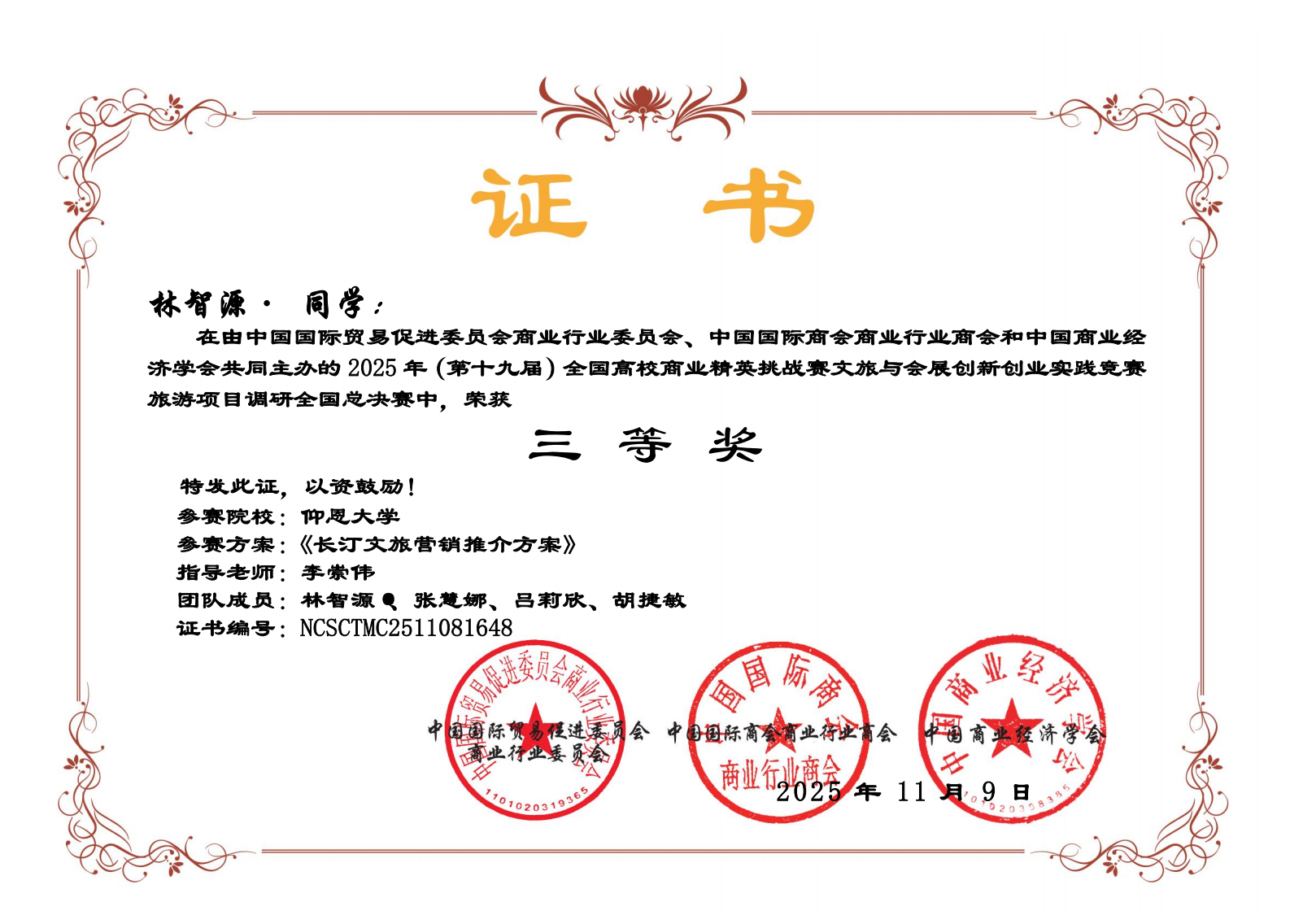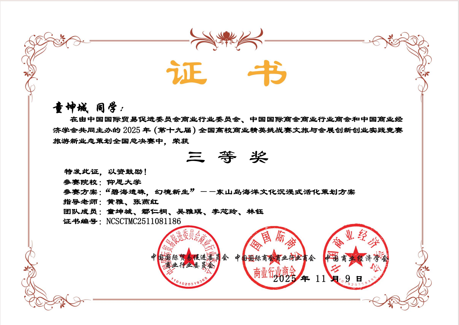 近日,第十九届全国高校商业精英挑战赛文旅与会展创新创业实践竞赛圆满落幕。经过激烈角逐,我院学子代表队斩获国赛一等奖1项、二等奖2项、三等奖4项。
