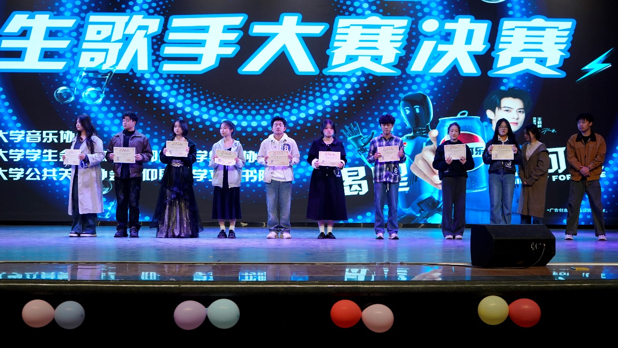 活动前期通过线上线下多渠道宣传,吸引近千名学生关注,众多音乐爱好者报名参与。比赛中,选手们演绎流行、民谣等多种风格曲目,戴泉莺《我怀念的》、兰嘉玲《红玫瑰白玫瑰》等演唱饱含情感,舞蹈协会助演增添看点,现场500余名观众掌声不断;赛后工作人员有序完成收尾工作,保障活动圆满。最终吴宜倩获冠军,马雪松、纪文杰分获亚季军,9名选手获优秀歌手称号。
