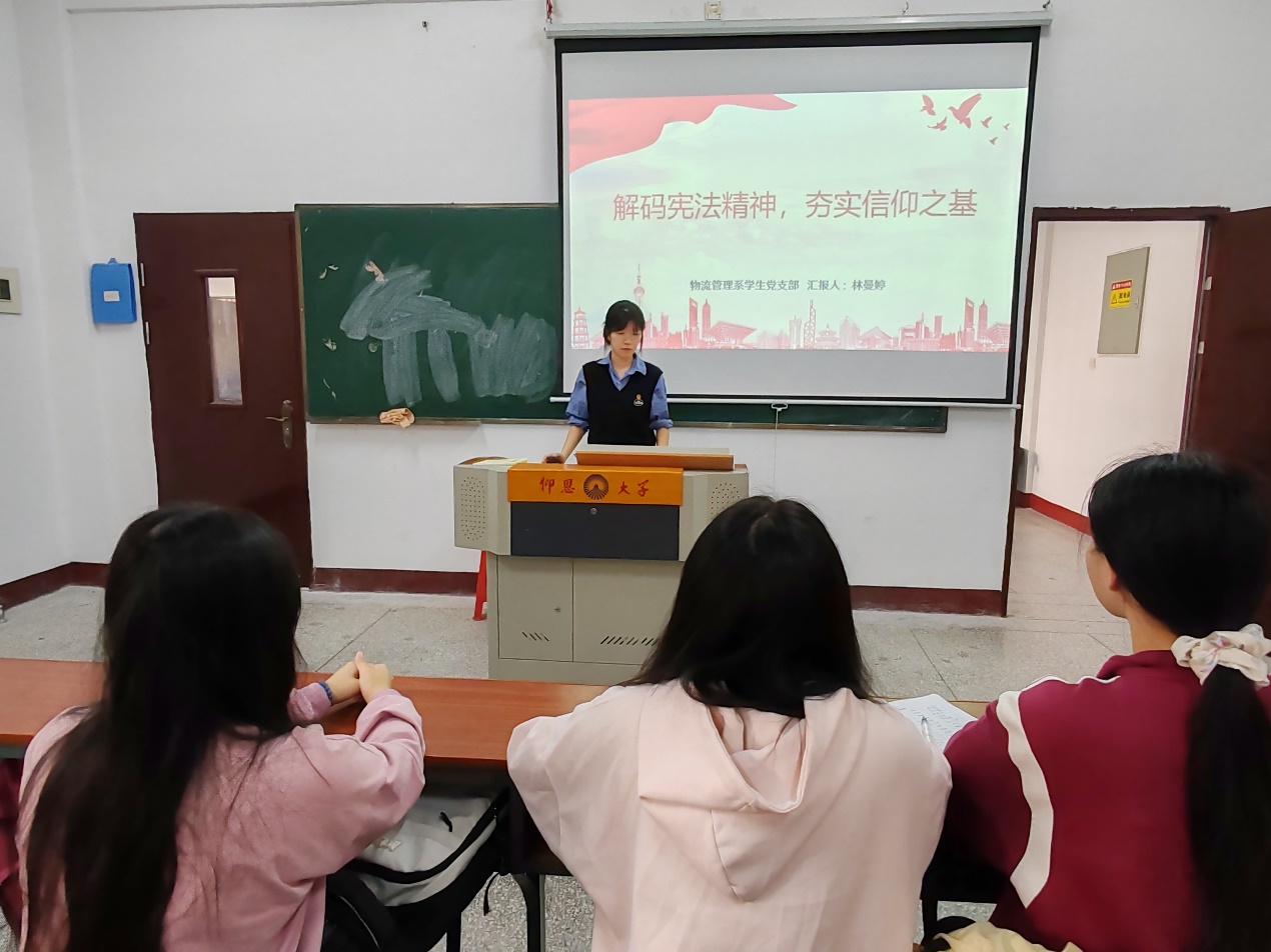 为深入学习贯彻宪法精神,强化信仰与责任担当,2025年12月08日,物流管理系学生党支部于祥贤楼206组织开展“学习宪法精神,夯实信仰之基” 主题党日活动。本次活动由林曼婷同志主持,支部全体同志参与。