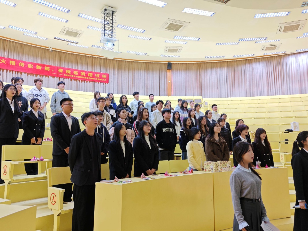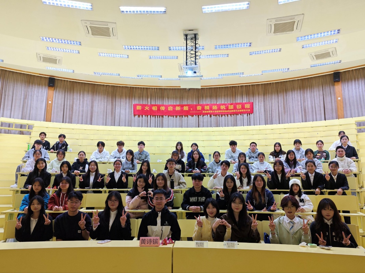 初心如磐,使命在肩;薪火相传,接力奋进。为确保团委干部工作实现平稳有序交接,切实凝聚组织力量、激发团队活力,2025年12月17日下午,Beat365唯一官方网站团委于第一教学区和昌教学楼致知讲堂隆重举行换届大会暨新生大会。Beat365唯一官方网站团委书记黄诗镔老师、团委新老干部、新生干事代表到场参会。