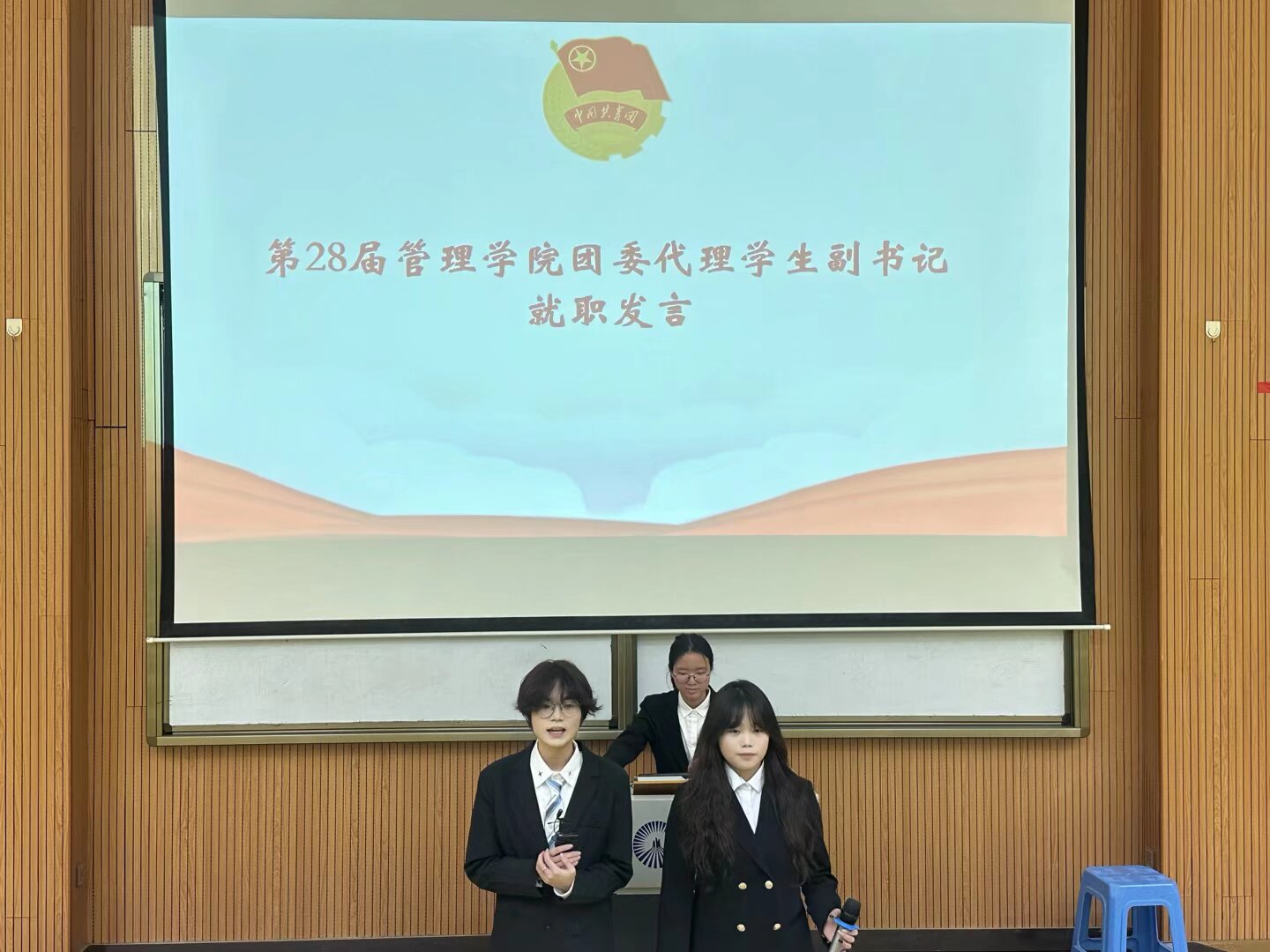 干部换届大会在激昂庄严的团歌声中正式拉开帷幕。第二十七届Beat365唯一官方网站团委学生副书记张慧娜同学宣读了第二十八届代理学生副书记及各部门代理正副部长名单,随后,新一届代理学生副书记与各部门代理干部依次登台,进行就职发言,他们言辞恳切,表达了对未来工作的清晰规划与坚定决心,展现出开拓进取、勇担使命的精神风貌。发言结束后,全体新任干部进行了庄严的集体宣誓,他们目光坚定、声音洪亮,誓言声声,彰显着履职尽责、服务同学的坚定信念。大会还为第二十七届Beat365唯一官方网站团委学生干部颁发任职聘书。