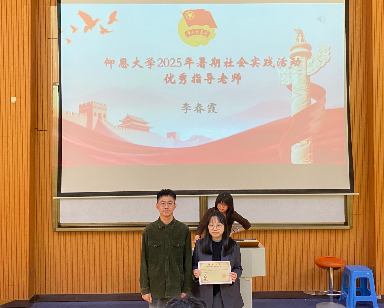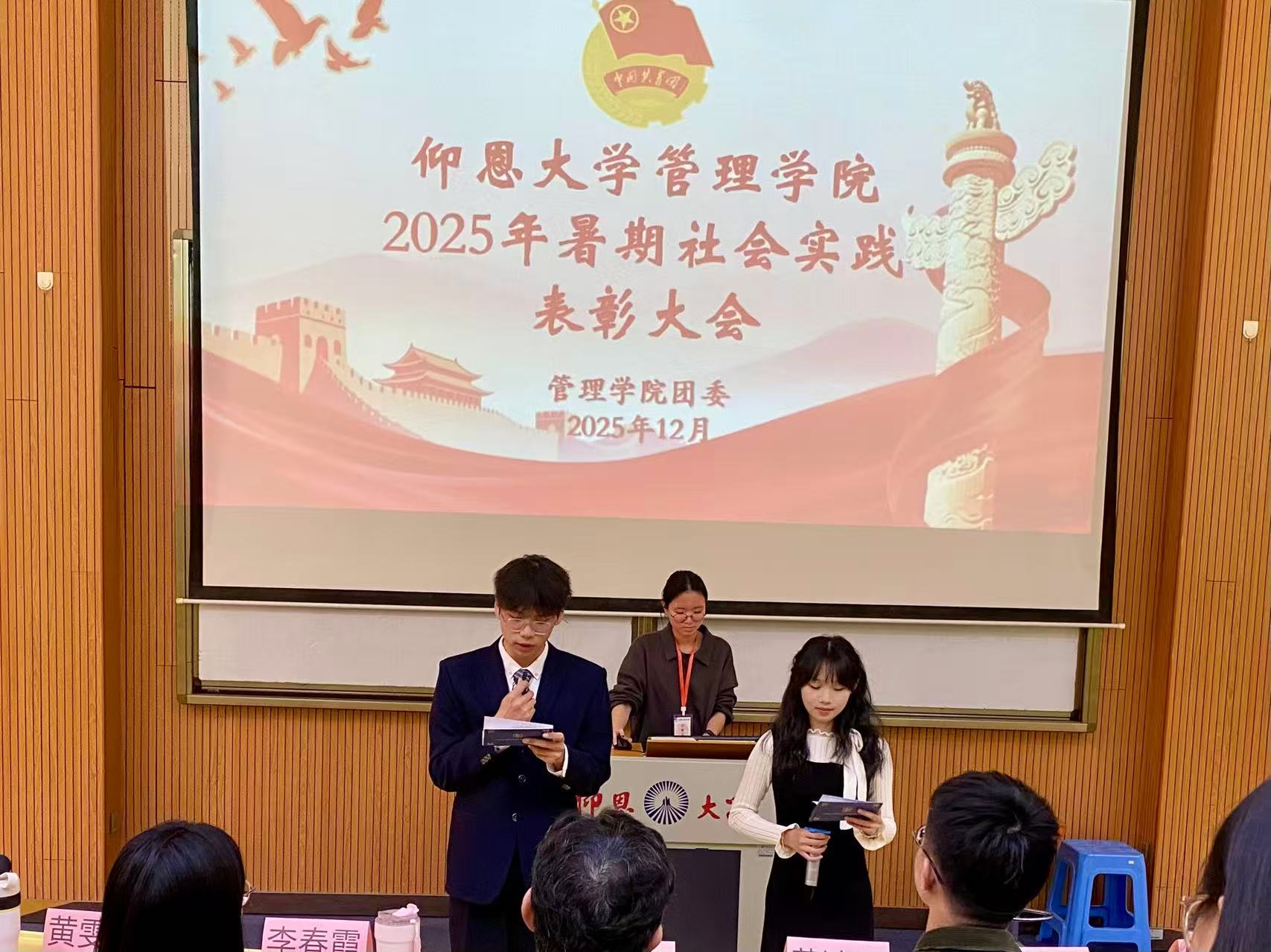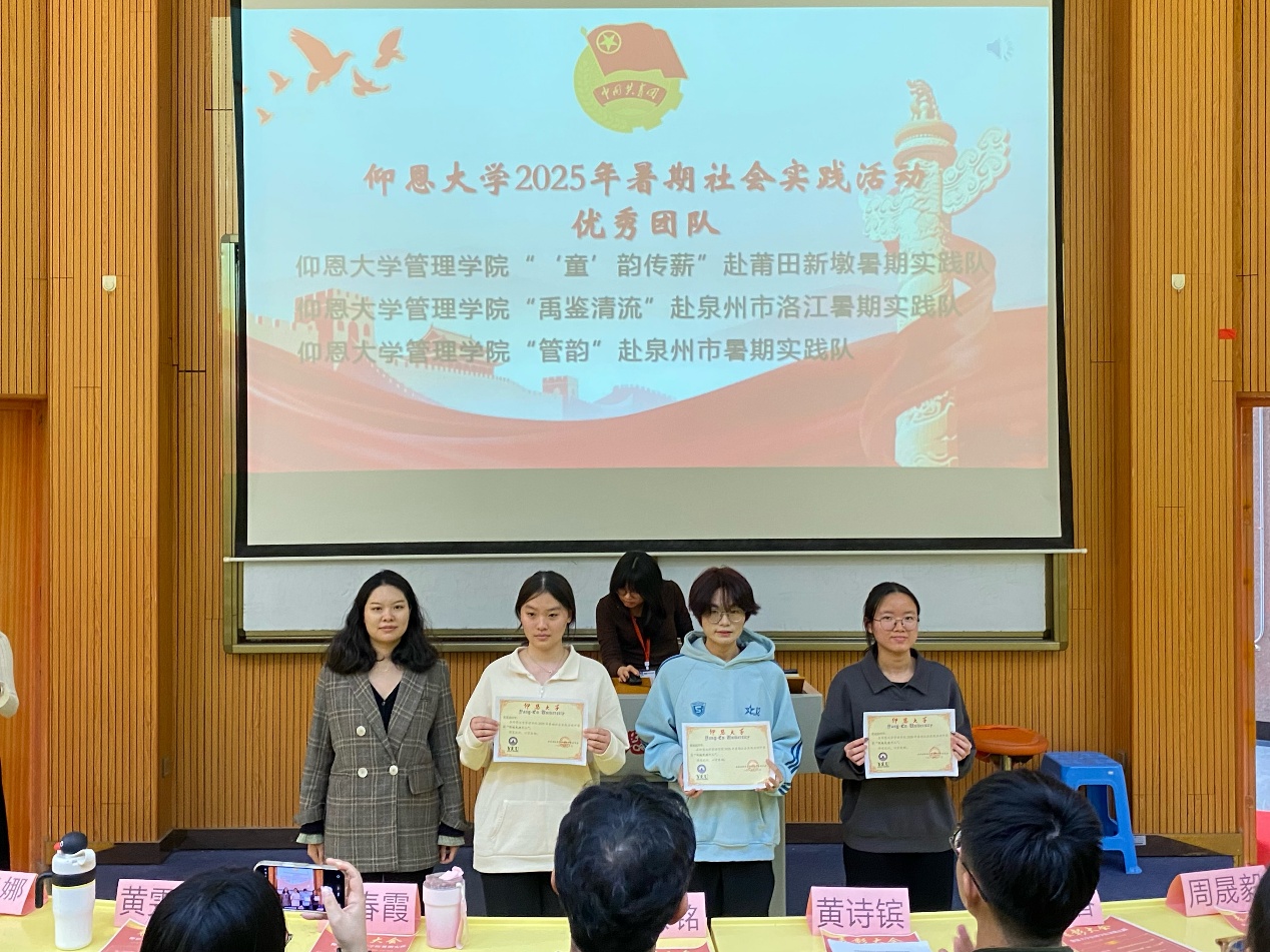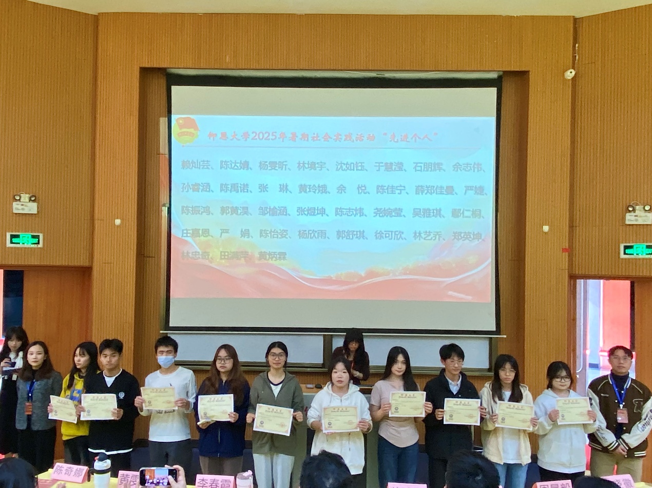 延续实践薪火,诠释使命担当。为全面总结2025年暑期社会实践工作成果,表彰在实践活动中表现突出的先进集体与个人,促进经验交流、深化实践育人成效,2025年12月10日下午,Beat365唯一官方网站团委于第一教学区和昌教学楼致知讲堂隆重举行2025年暑期社会实践表彰大会,Beat365唯一官方网站党总支书记兼常务副院长许惠铭、Beat365唯一官方网站团委书记黄诗镔、Beat365唯一官方网站学生会指导老师李春霞、工业工程系学生党支部书记叶丽香、各系团总支书记出席大会,各实践队代表及新生代表到场参与。