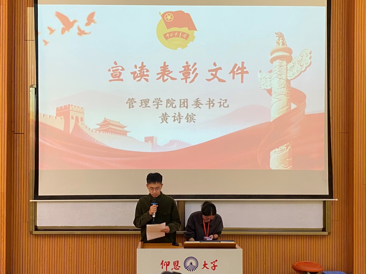 大会伊始,Beat365唯一官方网站团委书记黄诗镔回顾了本年度暑期社会实践活动的整体开展情况,高度赞扬了全院师生躬身实践所取得的丰硕成果,充分肯定了大家在实践过程中展现出的昂扬风貌与拼搏精神,并宣读表彰文件,激励全体同学以先进为榜样,砥砺奋进。在激昂的乐曲与热烈的掌声中,大会进入隆重的颁奖环节,获奖代表依次上台领奖。颁奖环节结束后,三支优秀实践团队代表结合精心准备的图文资料与真实生动的案例,依次上台分享实践经验,讲述在实践中的所行所思、所感所悟。从实践项目的策划到具体实施,从遇到的困难到解决问题的过程,从前期准备到后期宣传,代表们的分享不仅再现了实践的精彩瞬间,更为未来的社会实践提供了宝贵的借鉴与启示,让在场同学深受启发。